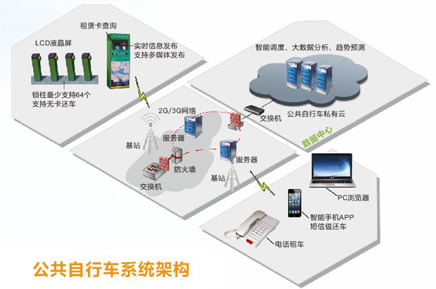 公共自行车即公用的自行车。城市交通与资源及环境有着密切联系,很多城市已经推出公共自行车系统。对于该系统基本涵义如下:政府或组织在大型居住区、商业中心、交通枢纽、旅游景点等客流集聚地设置公共自行车租车站,随时为不同人群提供适于骑行的公共自行车,以该服务系统和配套的自行车路网为载体,提供公共自行车出行服务的城市交通系统。 公共自行车系统构成 |